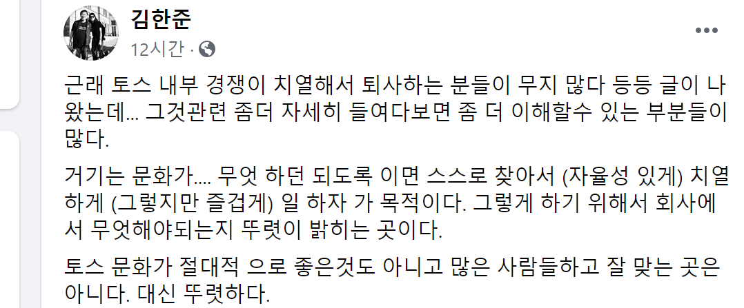 토스: "우리는 같이 일하는 사람들이 프로모션할지 아니면 내보낼지 결정하는 자율문화다. 같이 일하는 사람들에게 인정 받지못하면 회사에 남지 못한다."
