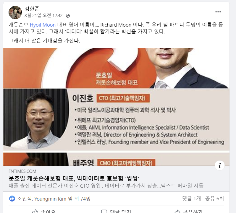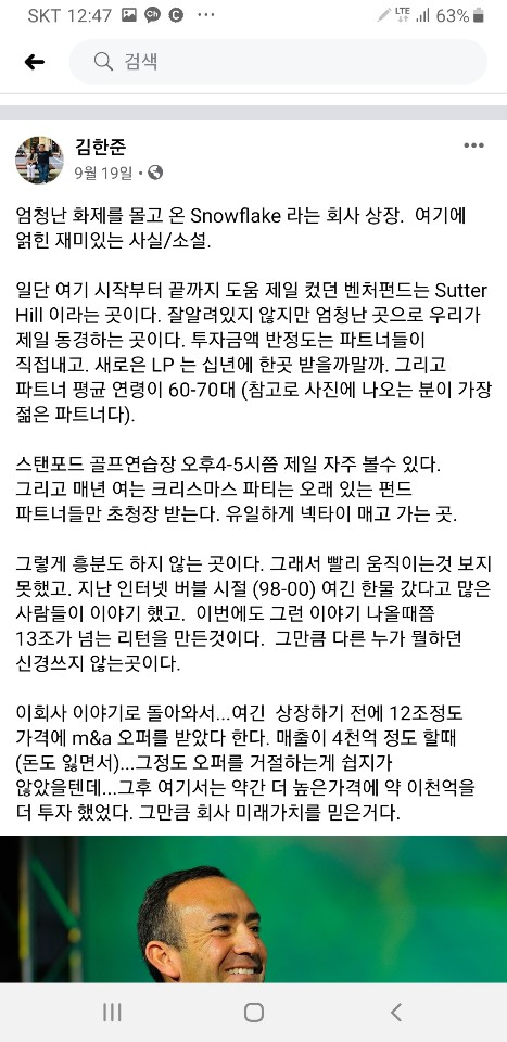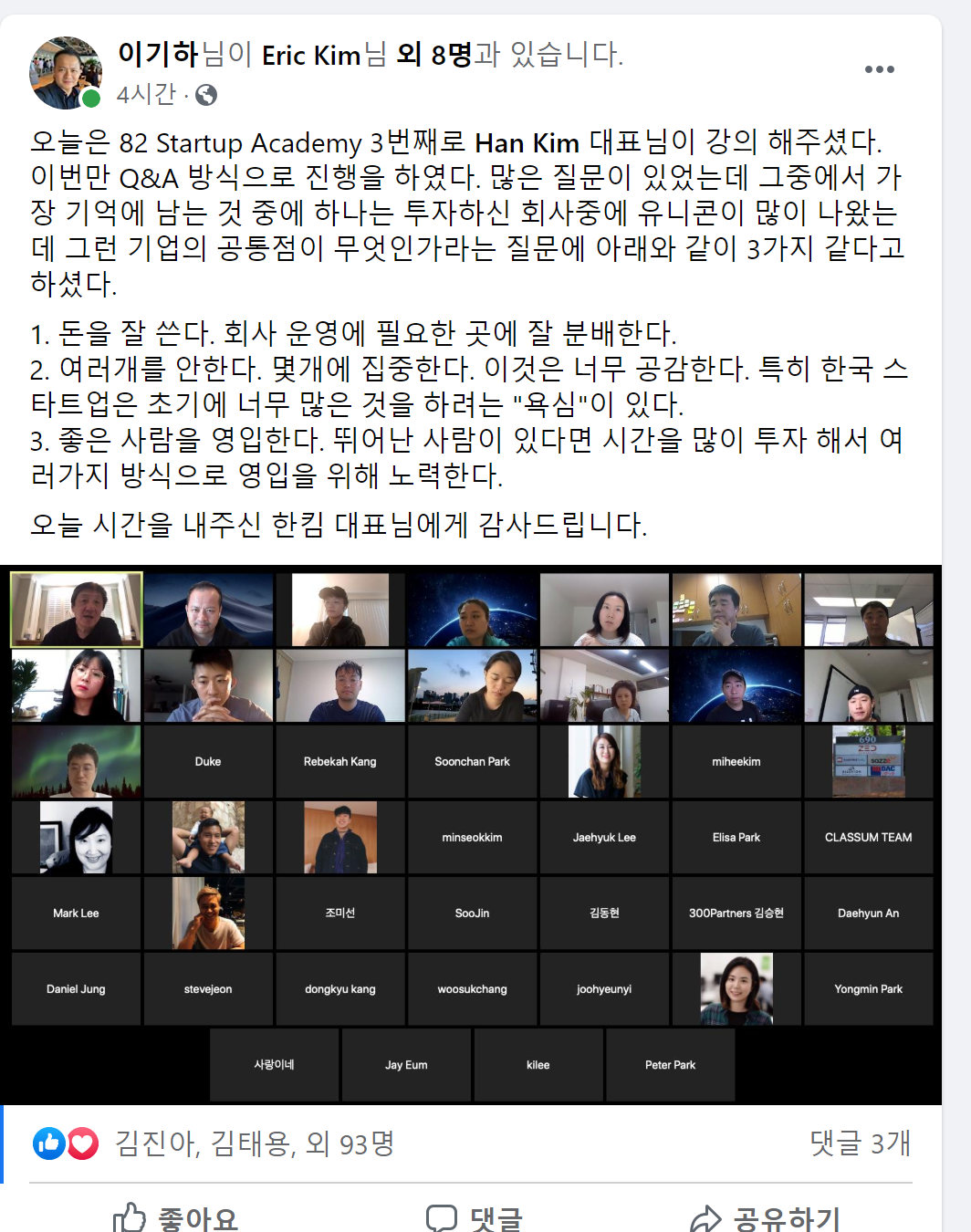 * 우리가 투자한 회사중 잘된 회사 대표는