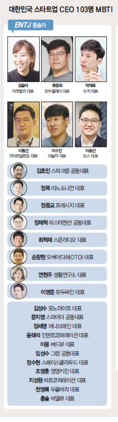 스타트업 CEO 107명 ‘MBTI’ 분석해봤더니…‘ENTJ’가 대세