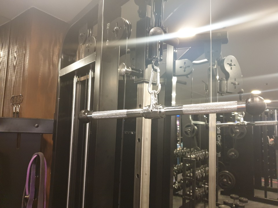 3. 머신에 앉고 바 올려서 뒤로 자극주는 운동