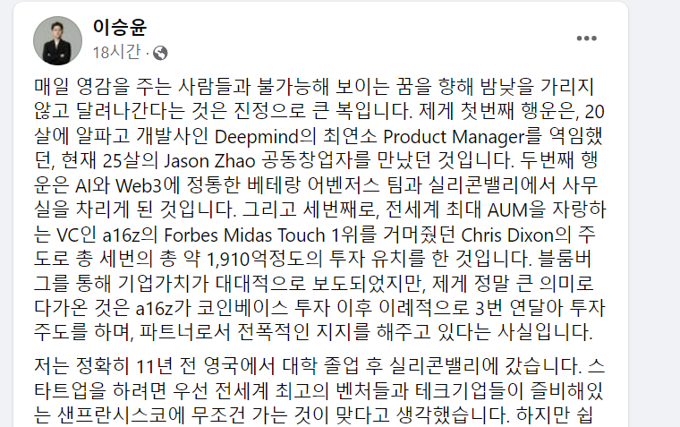 이처럼 이제는 글로벌시장에 거침없이 도전하고 훌륭한 성과를 내는 한국 창업자들이 많아지고 있습니다. 참 대단하다고 생각해서 이승윤대표에 대해서 좀 길게 메모해 둡니다.