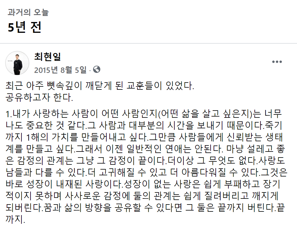 5년전에 내가 사랑에 대해 생각하는 글. 5년이 지난 시점에 아직도 이 생각은 굉장히 유효하다.