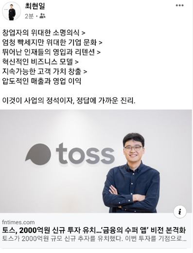 내가 생각하는 사업의 정석을 한국에서 가장 훌륭한 유즈케이스를 보여주시는 이승건 대표님.