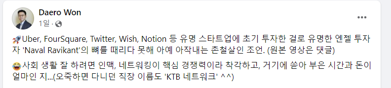 🚀Uber, FourSquare, Twitter, Wish, Notion 등 유명 스타트업에 초기 투자한 걸로 유명한 엔젤 투자자 'Naval Ravikant'의 뼈를 때리다 못해 아예 아작내는 촌철살인 조언. (원본 영상은 댓글)