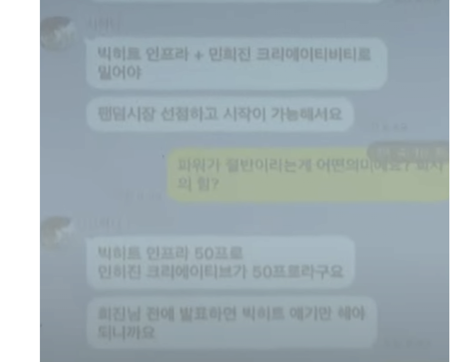 그리고 방시혁이 민희진에 대해서 압도적인 신뢰를 하고 있는 모습도 보인다.