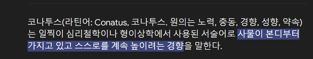 코나투스 뜻은 이렇다. 책을 지금까지 100권 정도 출판하셨는데 교수님은, 정말 대단하신 것 같다.. 1년에 한권씩 내도 100년이 걸리는데... 어마어마 하시다.