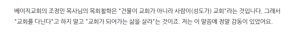 조정민 목사님이 개척하신 베이직교회는 그 이름답게 성경의 기본으로 돌아가자는 모토를 가지고 있습니다....